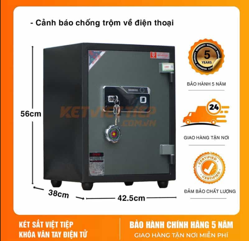 • Chống cháy vượt trội: Thân két chứa bột chống cháy nhập khẩu Nga, chịu nhiệt tới 1700°C trong 2 giờ.